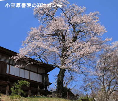国指定重要文化財「旧小笠原書院」の南側の土手に咲き 胸高周囲3m 樹高12m 推定樹齢300年 縣造りの書院によく生える じぃちゃんのブログ⇒小笠原書院の紅ヒガン